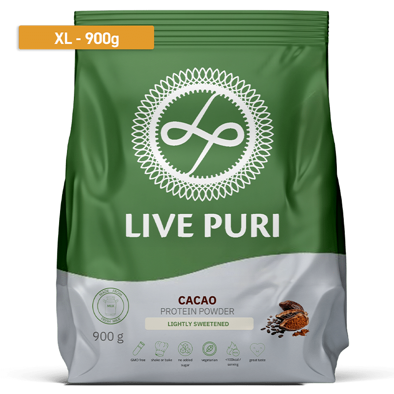 Live Puri Proteinpulver Kakao – die perfekte Kombination aus Geschmack, Qualität und Nährwert. Jetzt Vorteilspack testen und jeden Tag einen Schokoladen-Boost genießen!