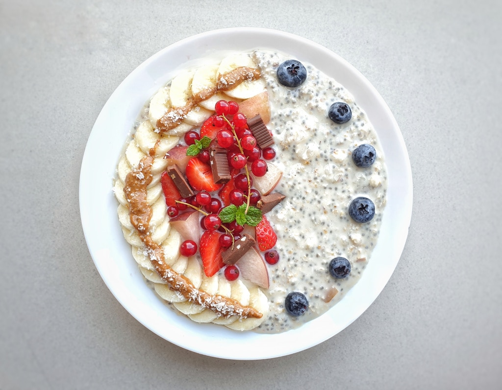 Overnight Oats sind im Grunde Haferflocken, die eine Nacht im Kühlschrank ruhen. Wenn du ein Fan von Haferfrühstücken bist, ist das eine großartige Idee für Morgen, an denen du früh unterwegs bist – oder wenn du ein einfaches und gesundes Frühstück für unterwegs suchst. Der Trick ist ganz einfach: Alle Zutaten am Abend vorher vermischen, eine Nacht ziehen lassen, und am nächsten Morgen musst du nur noch einen Löffel nehmen. Klingt perfekt, oder?
