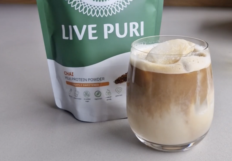- Fertig ist dein Protein Iced Chai Latte. Einfach lecker, mit extra Proteinpower