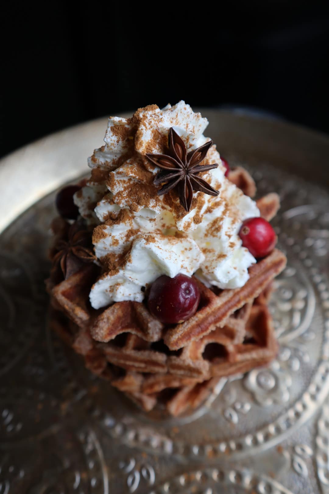 Stell dein Waffeleisen am besten direkt dauerhaft auf die Arbeitsfläche, denn wenn du diese Kombination einmal probiert hast, willst du nie wieder etwas anderes. Dieser Stapel besteht hauptsächlich aus nährstoffreichen Zutaten (Rotwein ist voller Antioxidantien!) und die Sahne ist natürlich komplett optional.